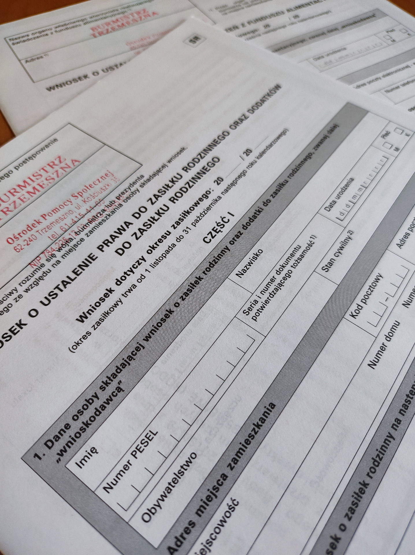 Wnioski do pobrania na stronie www.ops-trzemeszno.pl w zakładce świadczenia.